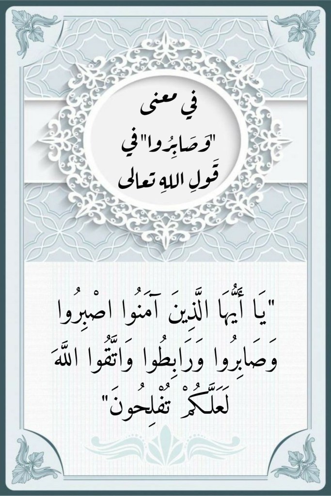 ديسمبر 29, 2022 Sufism24/7 في معنى “وَصَابِرُوا” في قَولِ اللهٍ تعالى “يَا أَيُّهَا الَّذِينَ آمَنُوا اصْبِرُوا وَصَابِرُوا وَرَابِطُوا وَاتَّقُوا اللَّهَ لَعَلَّكُمْ تُفْلِحُونَ” شارك هذا الموضوع: النقر للمشاركة على X (فتح في نافذة جديدة) X انقر للمشاركة على فيسبوك (فتح في نافذة جديدة) فيس بوك إعجاب تحميل... مرتبط