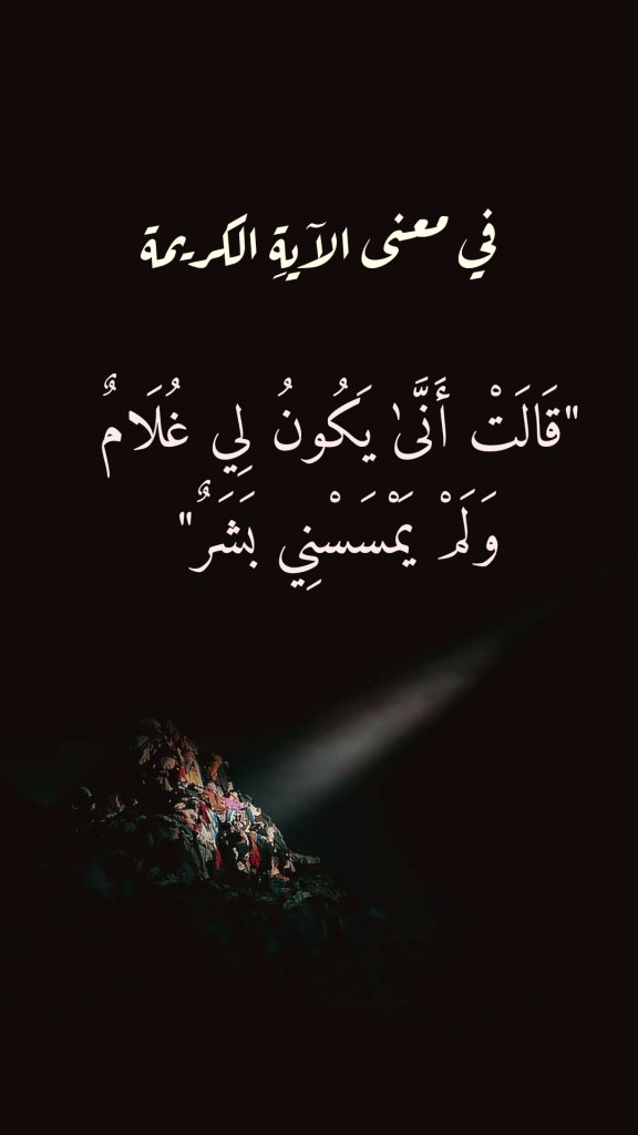 نقرأُ في سورةِ مريم، وفي الآياتِ الكريمةِ 16- 21 منها، قَولَ اللهِ تعالى: (وَاذْكُرْ فِي الْكِتَابِ مَرْيَمَ إِذِ انْتَبَذَتْ مِنْ أَهْلِهَا مَكَانًا شَرْقِيًّا. فَاتَّخَذَتْ مِنْ دُونِهِمْ حِجَابًا فَأَرْسَلْنَا إِلَيْهَا رُوحَنَا فَتَمَثَّلَ لَهَا بَشَرًا سَوِيًّا. قَالَتْ إِنِّي أَعُوذُ بِالرَّحْمَنِ مِنْكَ إِنْ كُنْتَ تَقِيًّا. قَالَ إِنَّمَا أَنَا رَسُولُ رَبِّكِ لِأَهَبَ لَكِ غُلَامًا زَكِيًّا. قَالَتْ أَنَّى يَكُونُ لِي غُلَامٌ وَلَمْ يَمْسَسْنِي بَشَرٌ وَلَمْ أَكُ بَغِيًّا. قَالَ كَذَلِكِ قَالَ رَبُّكِ هُوَ عَلَيَّ هَيِّنٌ وَلِنَجْعَلَهُ آيَةً لِلنَّاسِ وَرَحْمَةً مِنَّا وَكَانَ أَمْرًا مَقْضِيًّا).