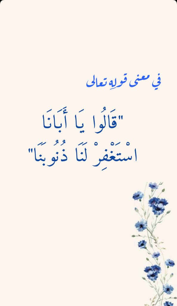 نقرأُ في سورةِ يوسف، وفي الآية الكريمة 97 منها، قَولَ اللهِ تعالى (قَالُوا يَا أَبَانَا اسْتَغْفِرْ لَنَا ذُنُوبَنَا إِنَّا كُنَّا خَاطِئِينَ).