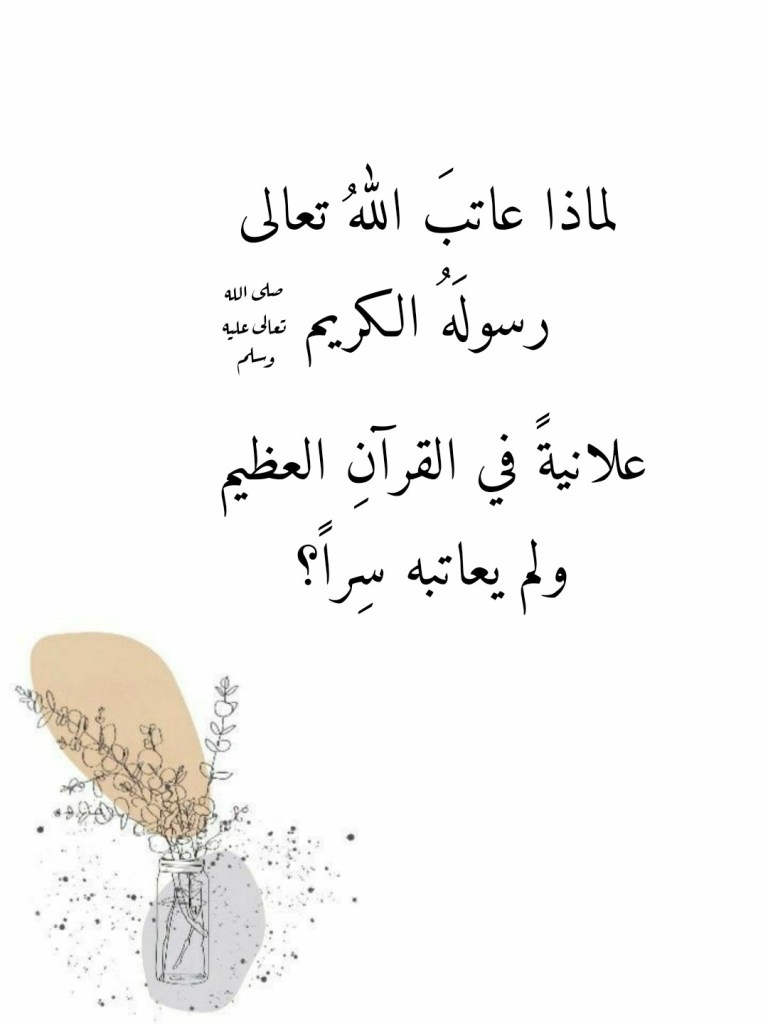 فلماذا عاتبَ اللهُ تعالى رسولَه الكريم صلَّى اللهُ تعالى عليه وسلَّم علانيةً في القرآنِ العظيم ولم يعاتبه سِراً؟
