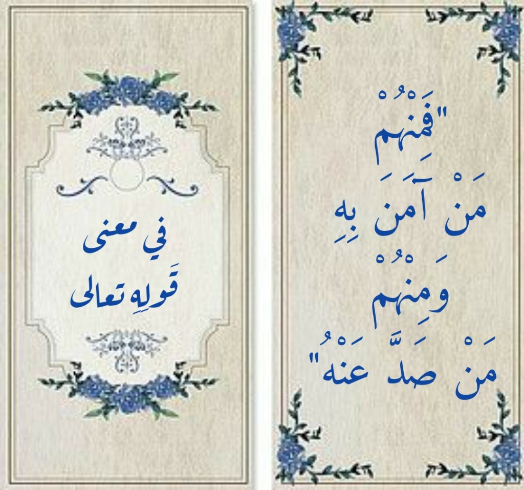 يتحدَّثُ اللهُ تعالى في الآيةِ الكريمة 55 من سورةِ النساء أعلاه عن الكتابِ الذي أنزلَه توراةً وزَبوراً وإنجيلا، وذلك قبل أن يُنزِلَ قرآنَه العظيمَ على سيدِنا محمد صلَّى اللهُ تعالى عليه وسلَّم. ويُذكِّرُ اللهُ تعالى في هذه الآيةِ الكريمة بما كان من أمرِ مَن أنزلَ عليهم كتابَه بين مؤمنٍ به وصادٍّ عنه. وهذا ليس بالأمرِ المستغربِ على بَني آدمَ الذين سبقَ وأن أنبأَ اللهُ تعالى أباهم آدم بما سيكونُ عليه حالُهم معه: