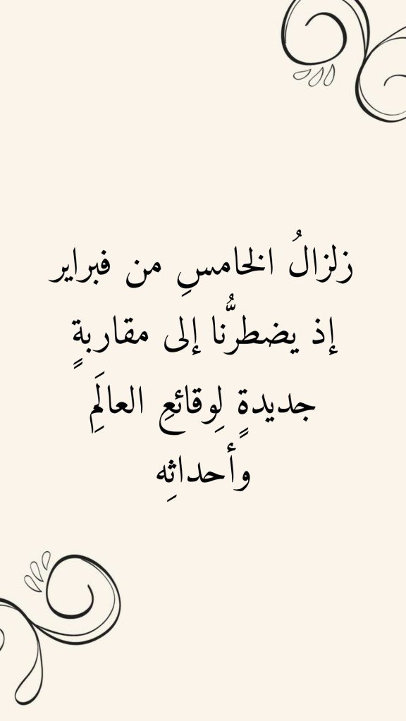 فيفري 13, 2023 Sufism24/7 زلزالُ الخامسِ من فبراير إذ يضطرُّنا إلى مقاربةٍ جديدةٍ لِوقائعِ العالَمِ وأحداثِه شارك هذا الموضوع: النقر للمشاركة على X (فتح في نافذة جديدة) X انقر للمشاركة على فيسبوك (فتح في نافذة جديدة) فيس بوك إعجاب تحميل... مرتبط