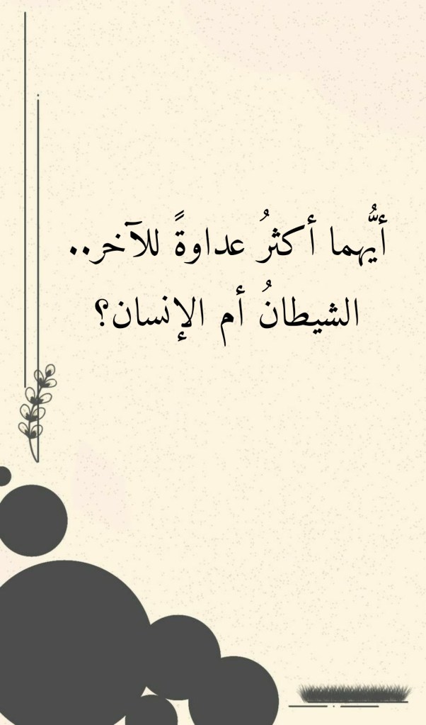 والآن، أما وقد تبيَّنَ لنا ما تبيَّن من عداوةِ الشيطانِ للإنسان، فأيُّهما أكثرُ عداوةً للآخر إذاً؟