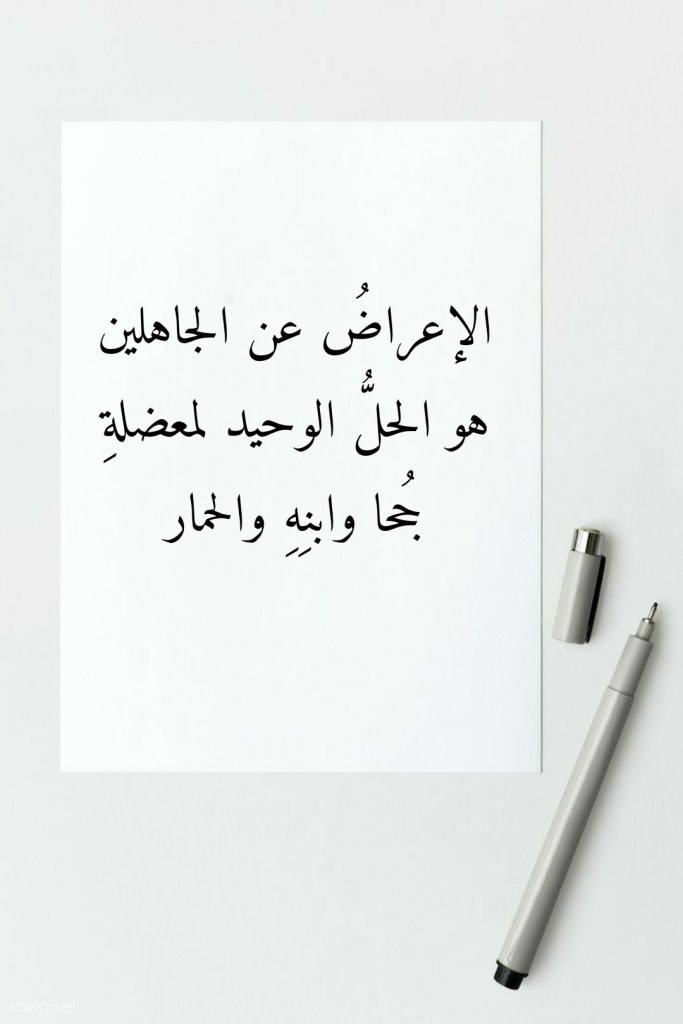 تذكِّرُ حكايةُ “جُحا مع ابنِه والحمار” هذه بما يُضطرُّ إلى مكابدتِه كلُّ مَن تجشَّم عناءَ محاولةِ استرضاءِ الناس جميعاً! وتزدادُ بِلَّةُ الطينِ حتى يُمسيَ وحلاً زَلِقاً كلما اجتهدَ المرءُ في جعلَ خطابِه لا يُغضبُ من الناسِ أحداً! ولذلك فليس هنالك من سبيلٍ إلى حلِّ هذه الإشكاليةِ المعضلة إلا بأن لا يلتفت المرءُ إلى ما يقولُه الناسُ طالما كان أكثرُ الناسِ لا يتَّبعون إلا الظن، وذلك كما قالَ اللهُ تعالى في قرآنِه العظيم: (وَإِنْ تُطِعْ أَكْثَرَ مَنْ فِي الْأَرْضِ يُضِلُّوكَ عَنْ سَبِيلِ اللَّهِ إِنْ يَتَّبِعُونَ إِلَّا الظَّنَّ وَإِنْ هُمْ إِلَّا يَخْرُصُونَ) (116 الأنعام). ولذلك أمرَ اللهُ تعالى رسولَه الكريم صلَّى اللهُ تعالى عليه وسلَّم بأن يُعرِضَ عن الجاهلين: (خُذِ الْعَفْوَ وَأْمُرْ بِالْعُرْفِ وَأَعْرِضْ عَنِ الْجَاهِلِينَ) (199 الأعراف).