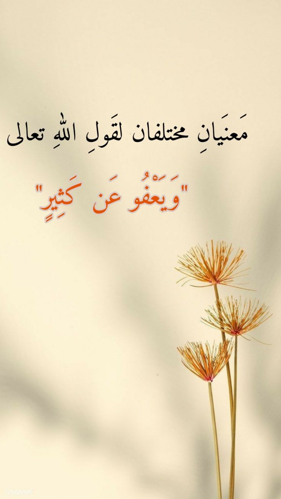 كما ونقرأُ في سورةِ الشورى، وفي الآيةِ الكريمة 30 منها، قولَ اللهِ تعالى: (وَمَا أَصَابَكُمْ مِنْ مُصِيبَةٍ فَبِمَا كَسَبَتْ أَيْدِيكُمْ وَيَعْفُو عَنْ كَثِيرٍ). فهل هناك تباينٌ في المعنى في قولِ اللهِ تعالى “وَيَعْفُو عَنْ كَثِيرٍ” في هاتين الآيتَين الكريمتَين؟