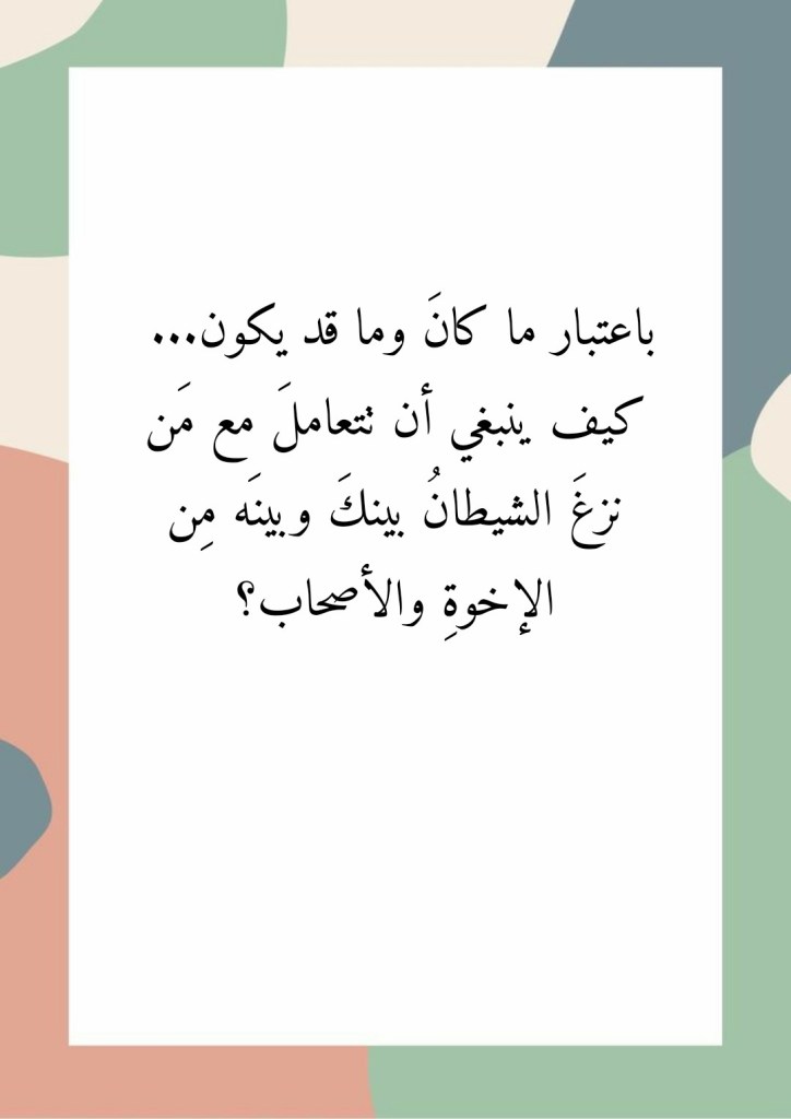 مارس 25, 2023 Sufism24/7 باعتبار ما كانَ وما قد يكون… كيف ينبغي أن تتعاملَ مع مَن نزغَ الشيطانُ بينكَ وبينَه من الإخوةِ والأصحاب؟ شارك هذا الموضوع: المشاركة على X (فتح في نافذة جديدة) X شارك على فيس بوك (فتح في نافذة جديدة) فيس بوك إعجاب تحميل... مرتبط