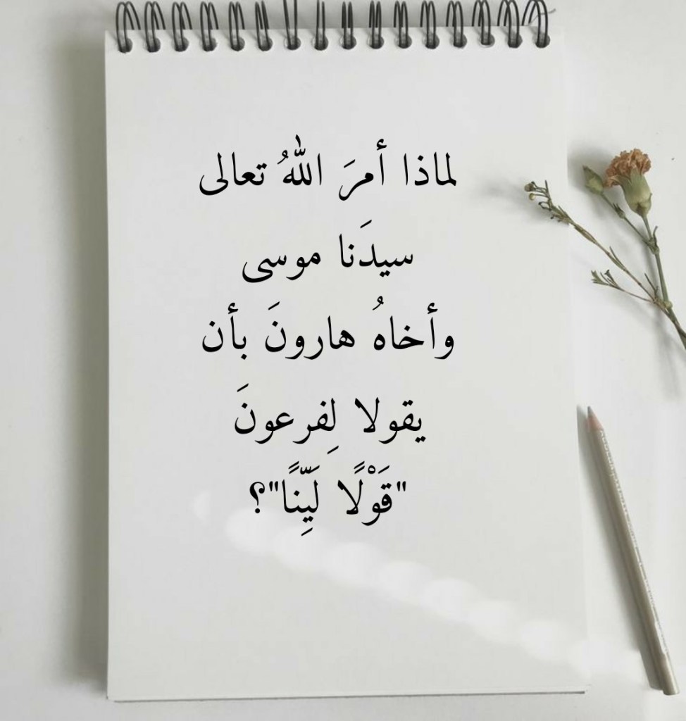 مارس 29, 2023 Sufism24/7 لماذا أمرَ اللهُ تعالى سيدَنا موسى وأخاهُ هارونَ بأن يقولا لِفرعونَ “قَوْلًا لَيِّنًا”؟ شارك هذا الموضوع: النقر للمشاركة على X (فتح في نافذة جديدة) X انقر للمشاركة على فيسبوك (فتح في نافذة جديدة) فيس بوك إعجاب تحميل... مرتبط