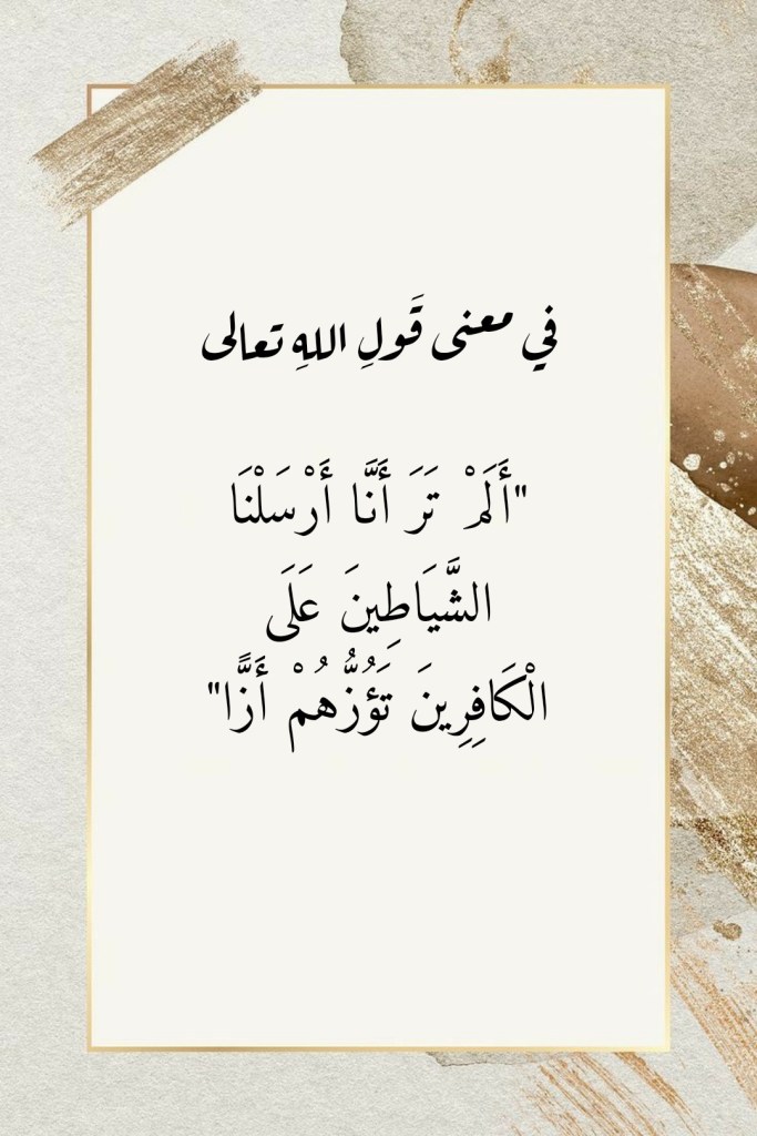أفريل 2, 2023 Sufism24/7 في معنى قَولِ اللهِ تعالى “أَلَمْ تَرَ أَنَّا أَرْسَلْنَا الشَّيَاطِينَ عَلَى الْكَافِرِينَ تَؤُزُّهُمْ أَزًّا” شارك هذا الموضوع: النقر للمشاركة على X (فتح في نافذة جديدة) X انقر للمشاركة على فيسبوك (فتح في نافذة جديدة) فيس بوك إعجاب تحميل... مرتبط