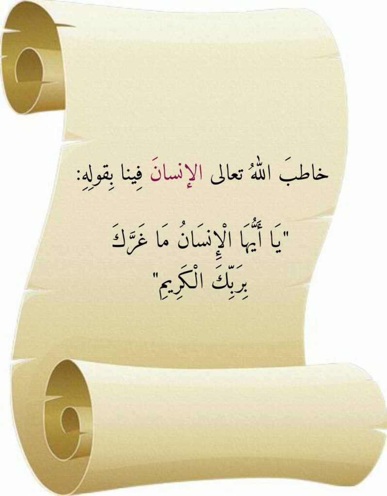 نقرأُ في سورةِ الانفطار، وفي الآيةِ الكريمة 6 منها، قولَ اللهِ تعالى (يَا أَيُّهَا الْإِنْسَانُ مَا غَرَّكَ بِرَبِّكَ الْكَرِيمِ). والإنسانُ المخاطَبُ بقولِ اللهِ تعالى هذا هو ذاك “الكيانُ” فينا الذي ما خلقَنا اللهُ تعالى لنتماهى معه! ونخطئُ إن ظننا أنَّ هذا “الكيان” هو كلُّ ما نحن عليه! فالإنسانُ فينا هو هذه النفسُ التي أمرَنا اللهُ تعالى بأن نُجاهدَها فيه فلا نُمكِّنَها منا خضوعاً لها وإطاعةً لما تأمرُنا به من المنكَر وما تنهانا عنه من المعروف! فواحدُنا لن يصبحَ هذا الإنسانَ الذي خاطبَهُ اللهُ تعالى بقولِه “يَا أَيُّهَا الْإِنْسَانُ مَا غَرَّكَ بِرَبِّكَ الْكَرِيمِ” إلا إذا ما ارتضى أن تتحكَّمَ فيه نفسُه فتُخضِعَه لإرادتِها التي لا ترضى له بأن يريدَ أحداً آخرَ سواها! فنحن هذا الإنسانُ إذا ما أسلمنا قِيادَنا لِهوانا فنزلنا عند إرادتِه!
