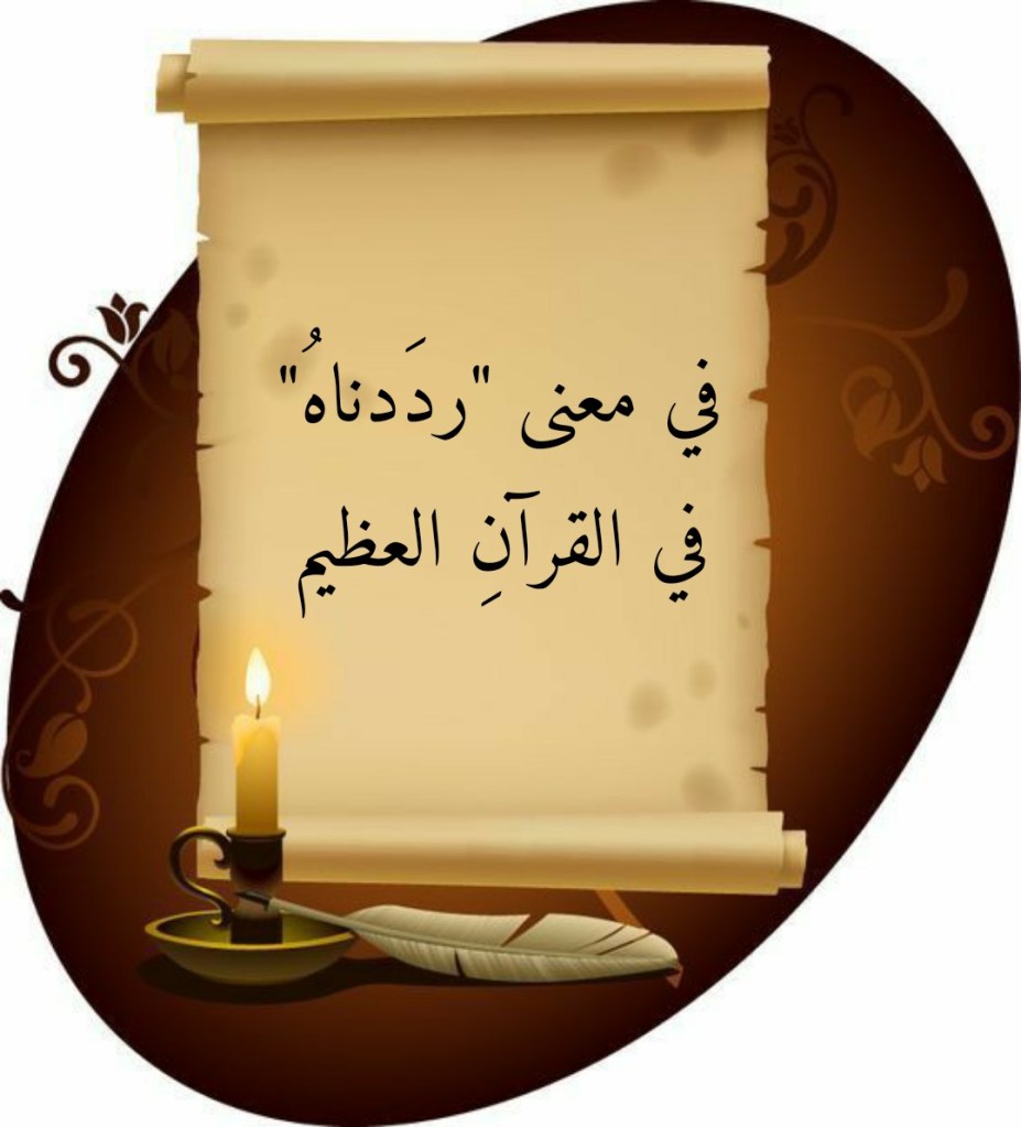 يُعينُ على تبيُّنِ هذا المعنى أن نستذكرَ الورودَ الآخر لكلمةِ “رددناه” في القرآنِ العظيم، وذلك في الآيةِ الكريمة 13 من سورةِ القصَص: (فَرَدَدْنَاهُ إِلَى أُمِّهِ كَيْ تَقَرَّ عَيْنُهَا وَلَا تَحْزَنَ وَلِتَعْلَمَ أَنَّ وَعْدَ اللَّهِ حَقٌّ وَلَكِنَّ أَكْثَرَهُمْ لَا يَعْلَمُونَ). فهذه الآيةُ الكريمة تتحدثُ عن سيدِنا موسى الذي “ردَّهُ” اللهُ تعالى إلى أُمِّه التي كانت قد ألقت به في اليَم استجابةً منها لأمرِ اللهِ تعالى: (وَأَوْحَيْنَا إِلَى أُمِّ مُوسَى أَنْ أَرْضِعِيهِ فَإِذَا خِفْتِ عَلَيْهِ فَأَلْقِيهِ فِي الْيَمِّ وَلَا تَخَافِي وَلَا تَحْزَنِي إِنَّا رَادُّوهُ إِلَيْكِ وَجَاعِلُوهُ مِنَ الْمُرْسَلِينَ) (7 القصَص). فاللهُ تعالى أنجزَ وعدَه لأمِّ موسى فـ “أعادَ” إليها رضيعَها و”أرجعَه” إلى حضنِها.