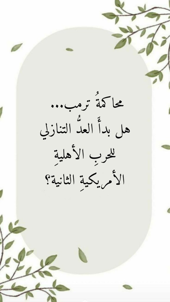أفريل 5, 2023 Sufism24/7 محاكمةُ ترمب… هل بدأَ العدُّ التنازلي للحربِ الأهليةِ الأمريكيةِ الثانية؟ شارك هذا الموضوع: النقر للمشاركة على X (فتح في نافذة جديدة) X انقر للمشاركة على فيسبوك (فتح في نافذة جديدة) فيس بوك إعجاب تحميل... مرتبط