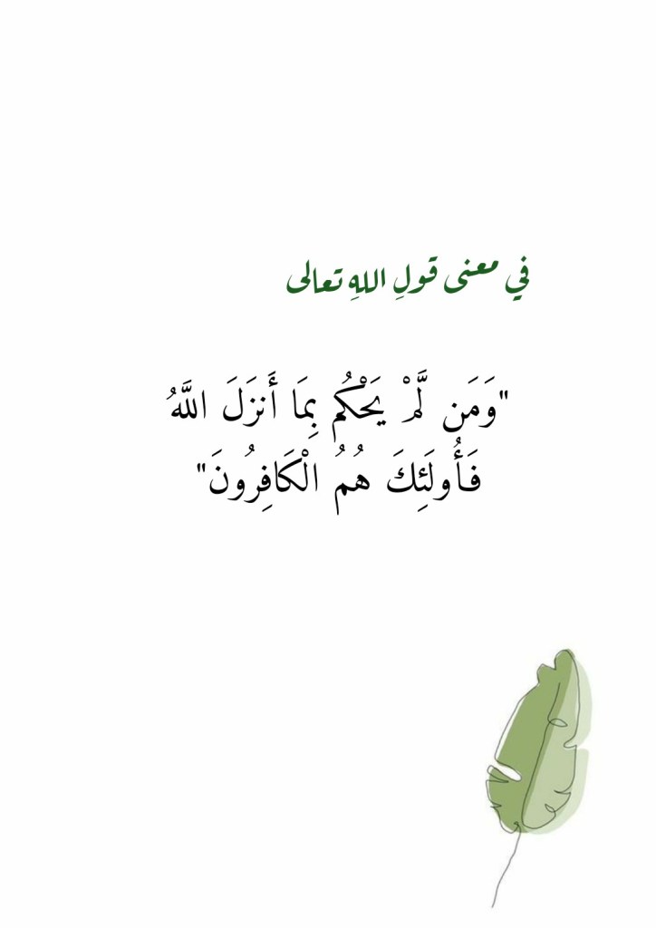أفريل 9, 2023 Sufism24/7 في معنى قولِ اللهِ تعالى “وَمَن لَّمْ يَحْكُم بِمَا أَنزَلَ اللَّهُ فَأُولَئِكَ هُمُ الْكَافِرُونَ” شارك هذا الموضوع: النقر للمشاركة على X (فتح في نافذة جديدة) X انقر للمشاركة على فيسبوك (فتح في نافذة جديدة) فيس بوك إعجاب تحميل... مرتبط