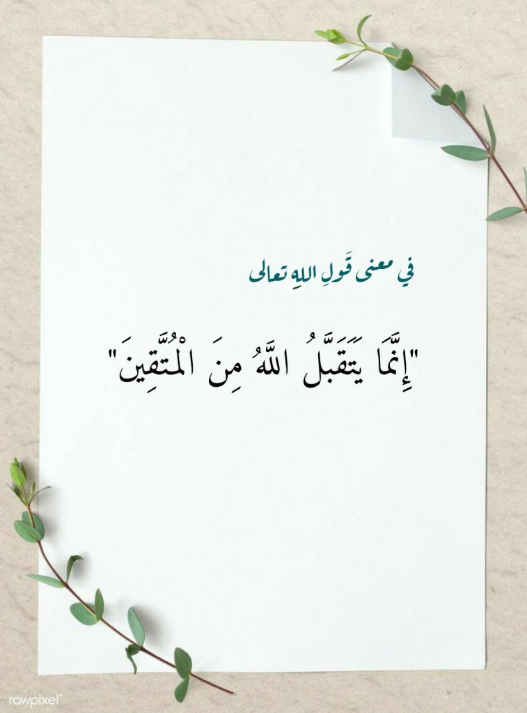 يُخطئُ مَن يظنُّ أن معنى قولِ اللهِ تعالى “إِنَّمَا يَتَقَبَّلُ اللَّهُ مِنَ الْمُتَّقِينَ” الواردِ في هذه الآية الكريمة يَلزمُ سياقَها التاريخي فلا يتعداه وصولاً إلى زمانِنا هذا وانتهاءً بمجيءِ يومِ القيامة! فقولُ اللهِ تعالى هذا قد حدَّدَ “المعيارَ” الذي حكَّمَهُ اللهُ تعالى في أعمالِ خلقِه فجعلَها محكومةً به لا بِغيرِه. فتقوى الله هي ما يجعلُ الأعمالَ مقبولةً عند الله. وهذا قانونٌ إلهي سارٍ في أعمالِنا كلِّها جميعاً. فاللهُ تعالى لن يقبلَ منا صلاةً ولا صياماً ولا حَجاً ولا زكاةً إلا إذا ما كنا من عبادِه المتقين الذين يخافونَه حقَّ مخافتِه ويخشونَه حقَّ خشيتِه ويتَّقونَه حقَّ تُقاته. وصدقَ رسولُ اللهِ صلَّى اللهُ تعالى عليه وسلَّم القائل: “رُبَّ صائمٍ ليسَ لَه من صيامِه إلَّا الجوعُ وربَّ قائمٍ ليسَ لَه من قيامِه إلَّا السَّهرُ”.