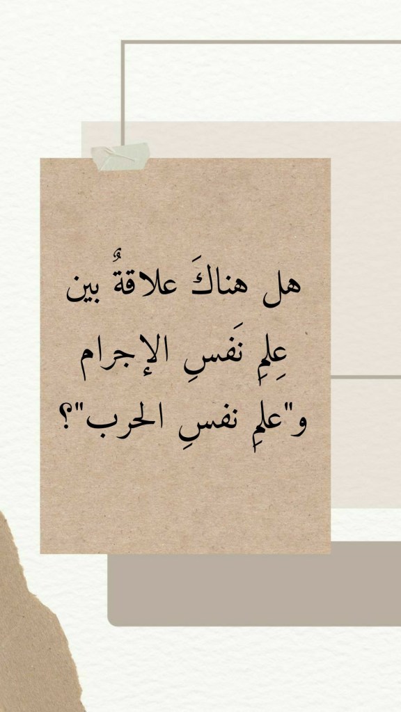 أفريل 13, 2023 Sufism24/7 هل هناكَ علاقةٌ بين عِلمِ نَفسِ الإجرام و”علمِ نفسِ الحرب”؟ شارك هذا الموضوع: النقر للمشاركة على X (فتح في نافذة جديدة) X انقر للمشاركة على فيسبوك (فتح في نافذة جديدة) فيس بوك إعجاب تحميل... مرتبط