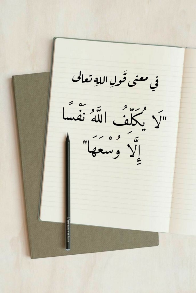 يُعينُ على تبيُّنِ هذا المعنى أن نستذكرَ ونتدبَّرَ قولَ اللهِ تعالى: (لَا يُكَلِّفُ اللَّهُ نَفْسًا إِلَّا مَا آتَاهَا) (من 7 الطلاق). فالأمرُ إذاً لا علاقةَ له، من قريبٍ أو بعيد، بما يظنُّه البعض من معنى لقولِ اللهِ تعالى “لا يُكَلِّفُ اللَّهُ نَفْسًا إِلَّا وُسْعَهَا” مفادُه أنَّ الأمرَ منوطٌ بما يستطيعُه الإنسانُ وبما هو قادرٌ بالتالي على أدائِه والقيامِ به! فاللهُ تعالى لم يكلِّفنا من العباداتِ ما لا طاقةَ لنا به وهو العالِمُ بِحالِنا إذ خلقَنا من ترابٍ ثم جعلَنا أجِنَّةً في بطونِ أمهاتِنا: (أَلَا يَعْلَمُ مَنْ خَلَقَ وَهُوَ اللَّطِيفُ الْخَبِيرُ) (14 المُلك)، (هُوَ أَعْلَمُ بِكُمْ إِذْ أَنْشَأَكُمْ مِنَ الْأَرْضِ وَإِذْ أَنْتُمْ أَجِنَّةٌ فِي بُطُونِ أُمَّهَاتِكُمْ) (من 31 النجم).