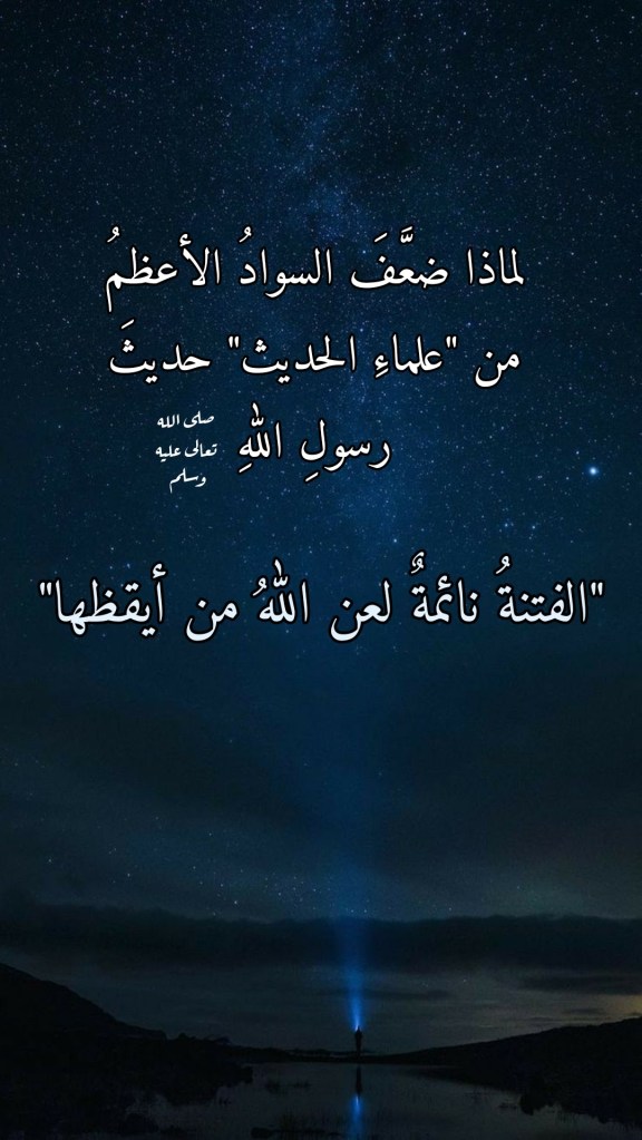 أفريل 26, 2023أفريل 26, 2023 Sufism24/7 لماذا ضعَّفَ السوادُ الأعظمُ من “علماءِ الحديث” حديثَ رسولِ اللهِ “الفتنةُ نائمةٌ لعن اللهُ من أيقظها” شارك هذا الموضوع: النقر للمشاركة على X (فتح في نافذة جديدة) X انقر للمشاركة على فيسبوك (فتح في نافذة جديدة) فيس بوك إعجاب تحميل... مرتبط