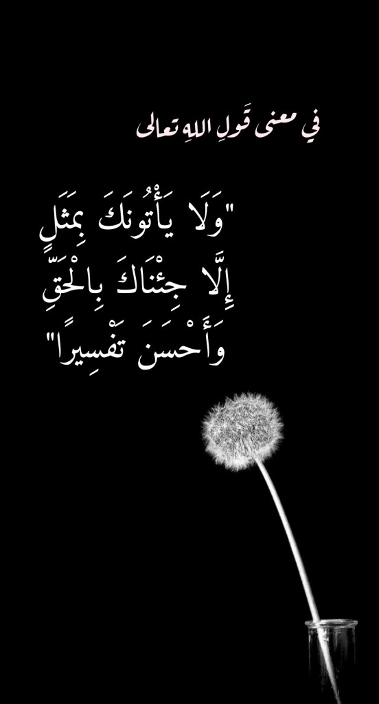 ماي 3, 2023ماي 3, 2023 Sufism24/7 في معنى قَولِ اللهِ تعالى “وَلَا يَأْتُونَكَ بِمَثَلٍ إِلَّا جِئْنَاكَ بِالْحَقِّ وَأَحْسَنَ تَفْسِيرًا” شارك هذا الموضوع: النقر للمشاركة على X (فتح في نافذة جديدة) X انقر للمشاركة على فيسبوك (فتح في نافذة جديدة) فيس بوك إعجاب تحميل... مرتبط