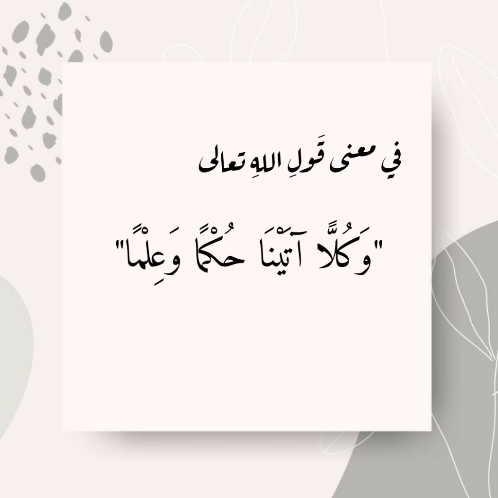 نقرأُ في سورةِ الأنبياء، وفي الآيتَين الكريمتَين 78- 79 منها، قولَ اللهِ تعالى: (وَدَاوُدَ وَسُلَيْمَانَ إِذْ يَحْكُمَانِ فِي الْحَرْثِ إِذْ نَفَشَتْ فِيهِ غَنَمُ الْقَوْمِ وَكُنَّا لِحُكْمِهِمْ شَاهِدِينَ. فَفَهَّمْنَاهَا سُلَيْمَانَ وَكُلًّا آتَيْنَا حُكْمًا وَعِلْمًا)، فما هو معنى “وَكُلًّا آتَيْنَا حُكْمًا وَعِلْمًا” في قولِ اللهِ تعالى هذا؟