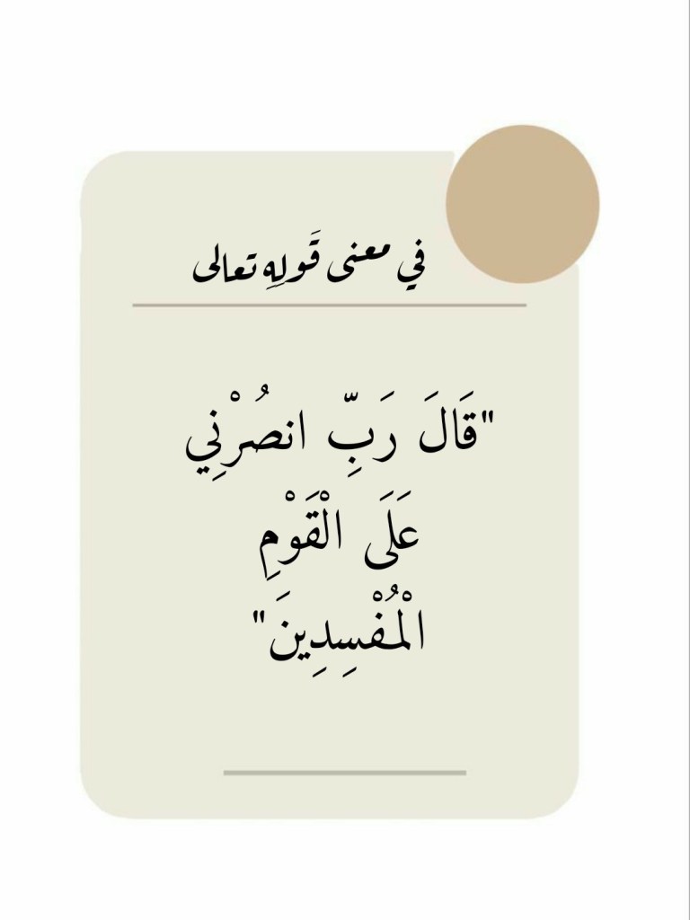 ماي 24, 2023 Sufism24/7 في معنى قَولِهِ تعالى “قَالَ رَبِّ انصُرْنِي عَلَى الْقَوْمِ الْمُفْسِدِينَ” شارك هذا الموضوع: النقر للمشاركة على X (فتح في نافذة جديدة) X انقر للمشاركة على فيسبوك (فتح في نافذة جديدة) فيس بوك إعجاب تحميل... مرتبط