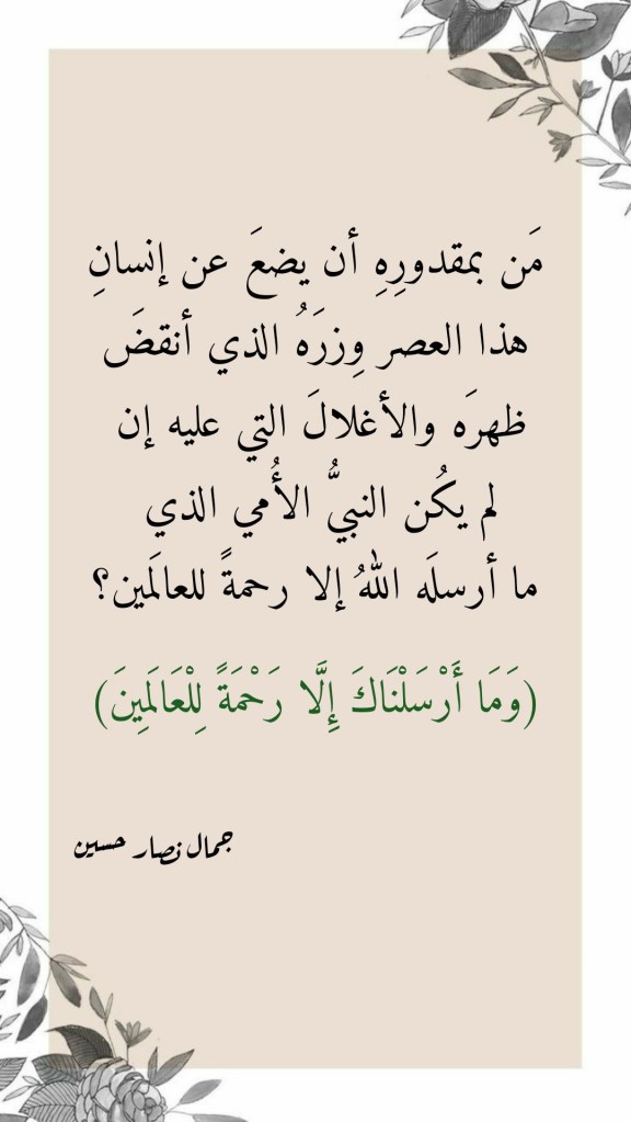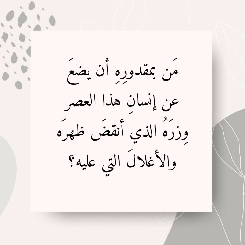 جوان 8, 2023جوان 8, 2023 Sufism24/7 مَن بمقدورِهِ أن يضعَ عن إنسانِ هذا العصر وِزرَهُ الذي أنقضَ ظهرَه والأغلالَ التي عليه؟ شارك هذا الموضوع: النقر للمشاركة على X (فتح في نافذة جديدة) X انقر للمشاركة على فيسبوك (فتح في نافذة جديدة) فيس بوك إعجاب تحميل... مرتبط