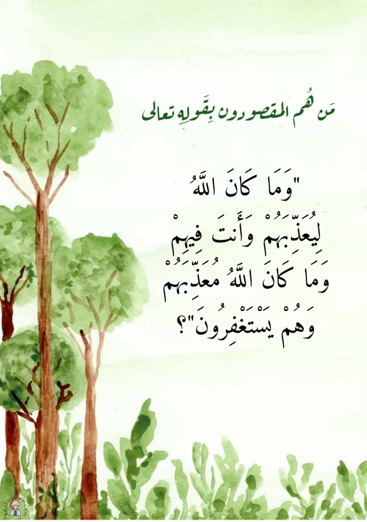 جوان 14, 2023 Sufism24/7 مَن هُم المقصودون بِقَولِهِ تعالى “وَمَا كَانَ اللَّهُ لِيُعَذِّبَهُمْ وَأَنتَ فِيهِمْ وَمَا كَانَ اللَّهُ مُعَذِّبَهُمْ وَهُمْ يَسْتَغْفِرُونَ”؟ شارك هذا الموضوع: النقر للمشاركة على X (فتح في نافذة جديدة) X انقر للمشاركة على فيسبوك (فتح في نافذة جديدة) فيس بوك إعجاب تحميل... مرتبط