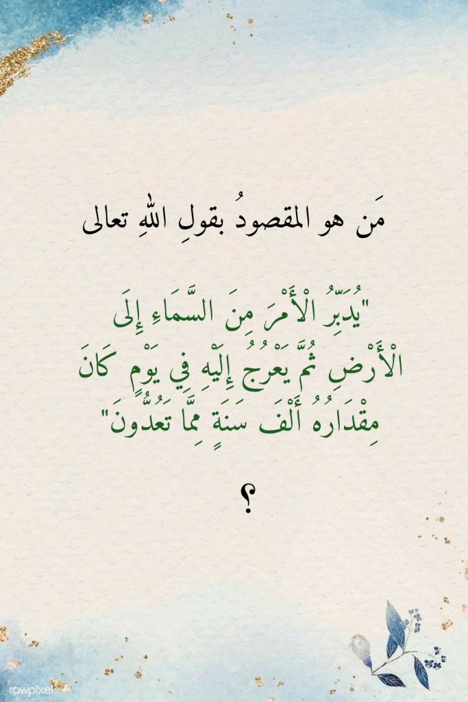 يتبيَّنُ لنا إذاً، وبتدبُّرِ هذه الآياتِ الكريمة، أنَّ مَن “يُدَبِّرُ الْأَمْرَ” في الآيةِ الكريمة 5 من سورةِ السجدة هو روحُ اللهِ الأمينُ سيدُنا جبريل عليه السلام. وسيدُنا جبريل، ومن بعدِ أن ينزِّلَ ما أذِنَ اللهُ تعالى بأن يتنزَّلَ من قرآنِه العظيم، يعرجُ إلى اللهِ تعالى في يومٍ حدَّدت هذه الآيةُ الكريمة مدتَه بألفٍ مما نعدُّ من السنين.