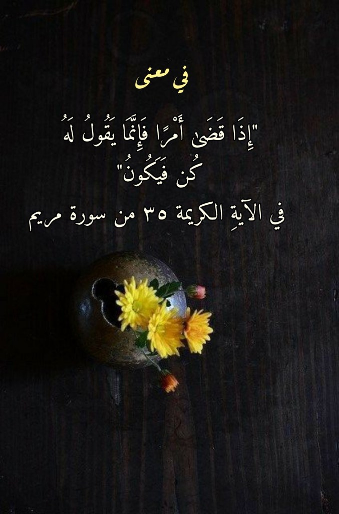 نقرأُ في سورةِ مريم، وفي الآيةِ الكريمة 35 منها، قولَ اللهِ تعالى: (مَا كَانَ لِلَّهِ أَنْ يَتَّخِذَ مِنْ وَلَدٍ سُبْحَانَهُ إِذَا قَضَى أَمْرًا فَإِنَّمَا يَقُولُ لَهُ كُنْ فَيَكُونُ).