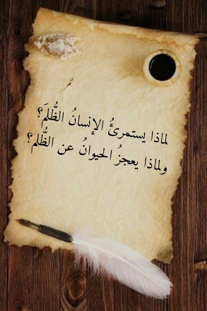 جويلية 24, 2023جويلية 26, 2023 Sufism24/7 لماذا يستمرئُ الإنسانُ الظُّلمَ؟ ولماذا يعجزُ الحيوانُ عن الظُّلم؟ شارك هذا الموضوع: النقر للمشاركة على X (فتح في نافذة جديدة) X انقر للمشاركة على فيسبوك (فتح في نافذة جديدة) فيس بوك إعجاب تحميل... مرتبط