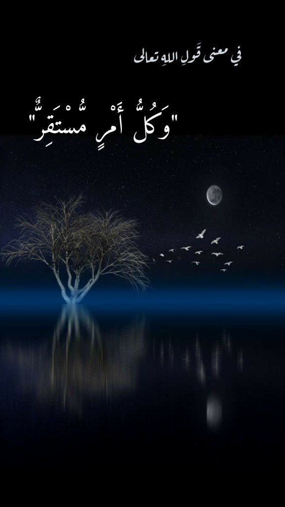 يتبيَّنُ لنا، وبتدبُّرِ ما تقدَّم، أنَّ كلَّ أمرٍ في السمواتِ والأرض لابد وأن ينتهيَ إلى “مستقَرٍّ له” بحلولِ يومِ القيامة. فكلُّ أمرٍ من أمورِ هذه الحياةِ الدنيا هو إذاً مستقِرٌّ ببلوغِه مستقرَّه الذي أجَّلَ اللهُ تعالى له يومَ خلقَ السمواتِ والأرض.