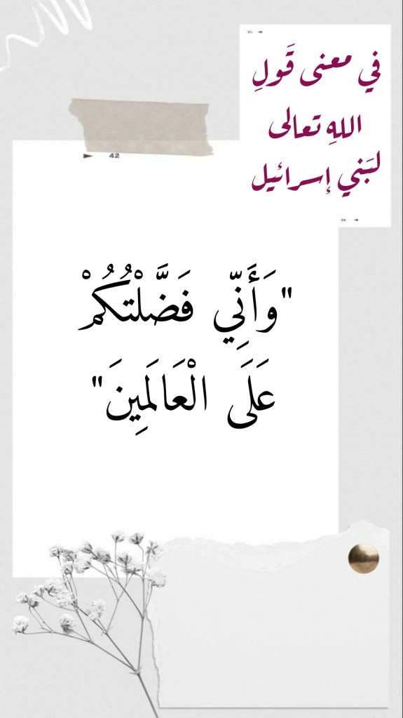 نقرأُ في سورةِ البقرة، وفي الآيةِ الكريمة 47 منها، قولَ اللهِ تعالى (يَا بَنِي إِسْرَائِيلَ اذْكُرُوا نِعْمَتِيَ الَّتِي أَنْعَمْتُ عَلَيْكُمْ وَأَنِّي فَضَّلْتُكُمْ عَلَى الْعَالَمِينَ). فما هو معنى “وَأَنِّي فَضَّلْتُكُمْ عَلَى الْعَالَمِينَ” في هذه الآيةِ الكريمة؟