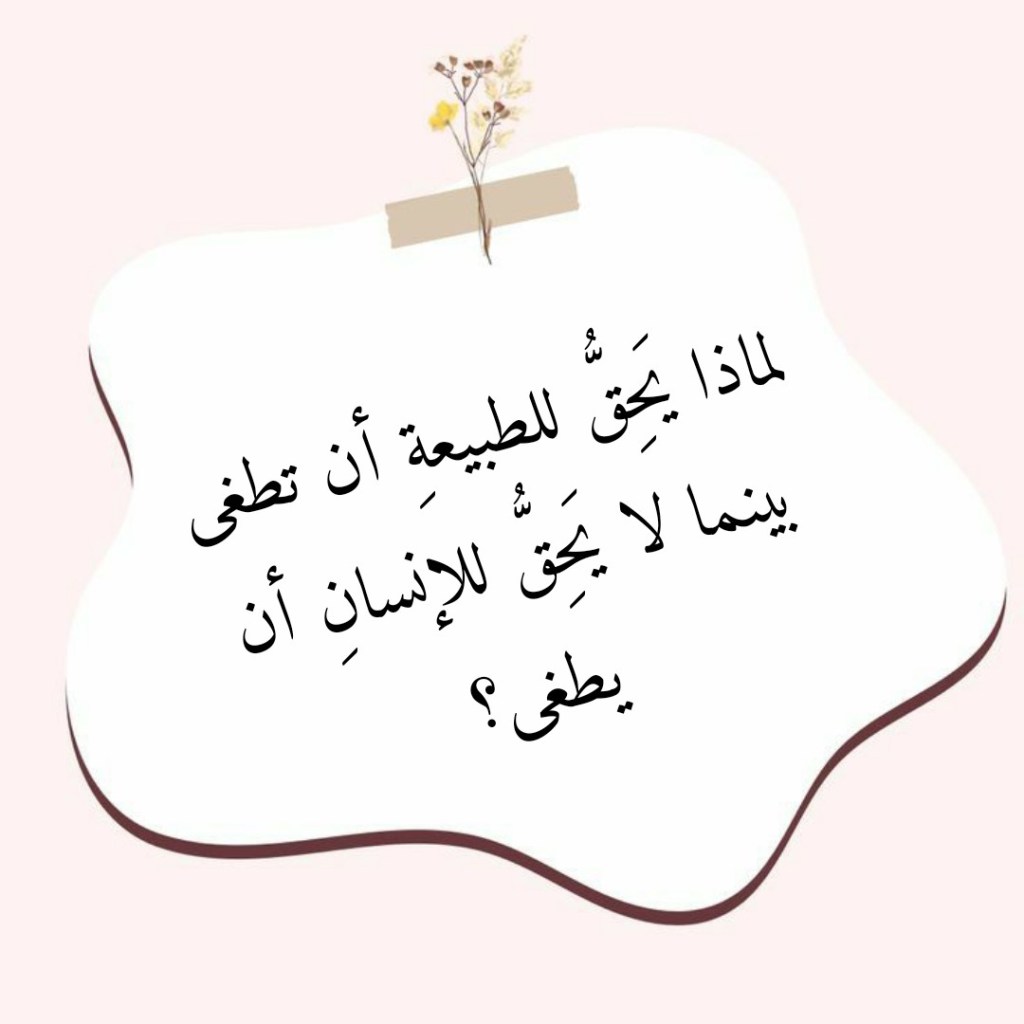 أوت 23, 2023أوت 23, 2023 Sufism24/7 لماذا يَحِقُّ للطبيعةِ أن تطغى بينما لا يَحِقُّ للإنسانِ أن يطغى؟ شارك هذا الموضوع: النقر للمشاركة على X (فتح في نافذة جديدة) X انقر للمشاركة على فيسبوك (فتح في نافذة جديدة) فيس بوك إعجاب تحميل... مرتبط