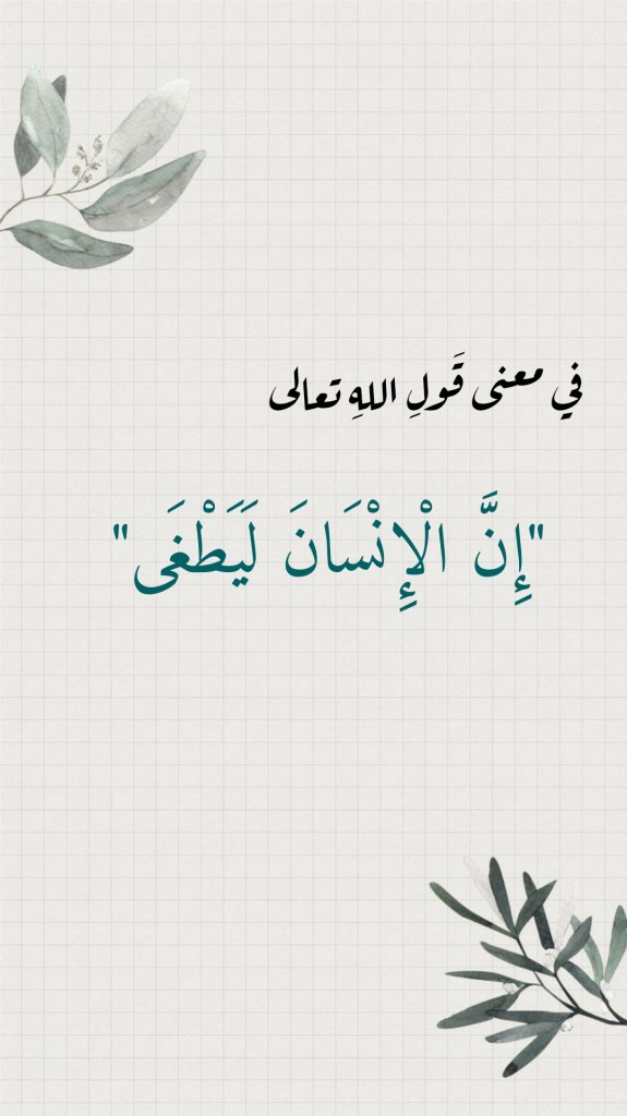 أوت 24, 2023أوت 24, 2023 Sufism24/7 في معنى قولِ اللهِ تعالى “إِنَّ الْإِنْسَانَ لَيَطْغَى” شارك هذا الموضوع: النقر للمشاركة على X (فتح في نافذة جديدة) X انقر للمشاركة على فيسبوك (فتح في نافذة جديدة) فيس بوك إعجاب تحميل... مرتبط