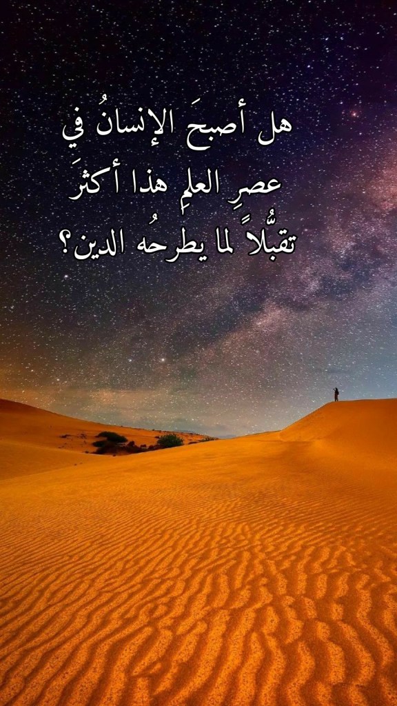 أوت 24, 2023أوت 24, 2023 Sufism24/7 هل أصبحَ الإنسانُ في عصرِ العلمِ هذا أكثرَ تقبُّلاً لما يطرحُه الدين؟ شارك هذا الموضوع: النقر للمشاركة على X (فتح في نافذة جديدة) X انقر للمشاركة على فيسبوك (فتح في نافذة جديدة) فيس بوك إعجاب تحميل... مرتبط