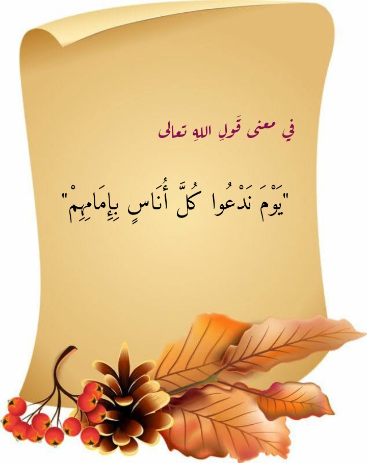 وهذا هو عينُ المعنى الذي ينطوي عليه قولُ اللهِ تعالى: (يَوْمَ نَدْعُوا كُلَّ أُنَاسٍ بِإِمَامِهِمْ) (من 71 الإسراء). فاللهُ سوف يدعو يومَ القيامة كلَّ إنسانٍ بكتابِه الذي استنسخَ تعالى فيه ما كان يعملُ في حياتِه الدنيا: (وَتَرَى كُلَّ أُمَّةٍ جَاثِيَةً كُلُّ أُمَّةٍ تُدْعَى إِلَى كِتَابِهَا الْيَوْمَ تُجْزَوْنَ مَا كُنْتُمْ تَعْمَلُونَ. هَذَا كِتَابُنَا يَنْطِقُ عَلَيْكُمْ بِالْحَقِّ إِنَّا كُنَّا نَسْتَنْسِخُ مَا كُنْتُمْ تَعْمَلُونَ) (28- 29 الجاثية). فكلُّ إنسانٍ يومَ القيامة سوف يأتي اللهَ تعالى ومعه كتابُ أعمالِه في هذه الحياةِ الدنيا؛ فأصحابُ اليمين (أصحابُ الميمنة) سوف يؤتَونَ كتابَ أعمالِهم بيمينِهم، وأصحابُ الشمال (أصحابُ المشأمة) سوف يؤتون كتابَ أعمالِهم بشمالِهم: (يَوْمَ نَدْعُوا كُلَّ أُنَاسٍ بِإِمَامِهِمْ فَمَنْ أُوتِيَ كِتَابَهُ بِيَمِينِهِ فَأُولَئِكَ يَقْرَءُونَ كِتَابَهُمْ وَلَا يُظْلَمُونَ فَتِيلًا. وَمَنْ كَانَ فِي هَذِهِ أَعْمَى فَهُوَ فِي الْآخِرَةِ أَعْمَى وَأَضَلُّ سَبِيلًا) (71- 72 الإسراء).