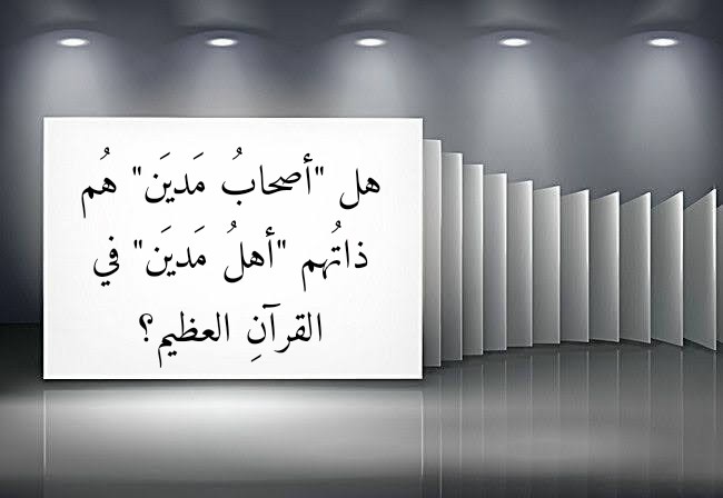 “أصحابُ مَديَن” هُم قومُ سيدِنا شُعيب الذين أبادَهم اللهُ تعالى عن بكرةِ أبيهم: (وَإِنْ يُكَذِّبُوكَ فَقَدْ كَذَّبَتْ قَبْلَهُمْ قَوْمُ نُوحٍ وَعَادٌ وَثَمُودُ. وَقَوْمُ إِبْرَاهِيمَ وَقَوْمُ لُوطٍ. وَأَصْحَابُ مَدْيَنَ وَكُذِّبَ مُوسَى فَأَمْلَيْتُ لِلْكَافِرِينَ ثُمَّ أَخَذْتُهُمْ فَكَيْفَ كَانَ نَكِيرِ). و”أصحابُ مَدين” الذين دمَّرَهم اللهُ تعالى إذاً هُم ليسوا “أهلَ مَدين” الذين قالَ اللهُ تعالى فيهم في قرآنِه العظيم: (فَلَبِثْتَ سِنِينَ فِي أَهْلِ مَدْيَنَ ثُمَّ جِئْتَ عَلَى قَدَرٍ يَا مُوسَى)، (وَمَا كُنْتَ ثَاوِيًا فِي أَهْلِ مَدْيَنَ تَتْلُو عَلَيْهِمْ آيَاتِنَا وَلَكِنَّا كُنَّا مُرْسِلِينَ).