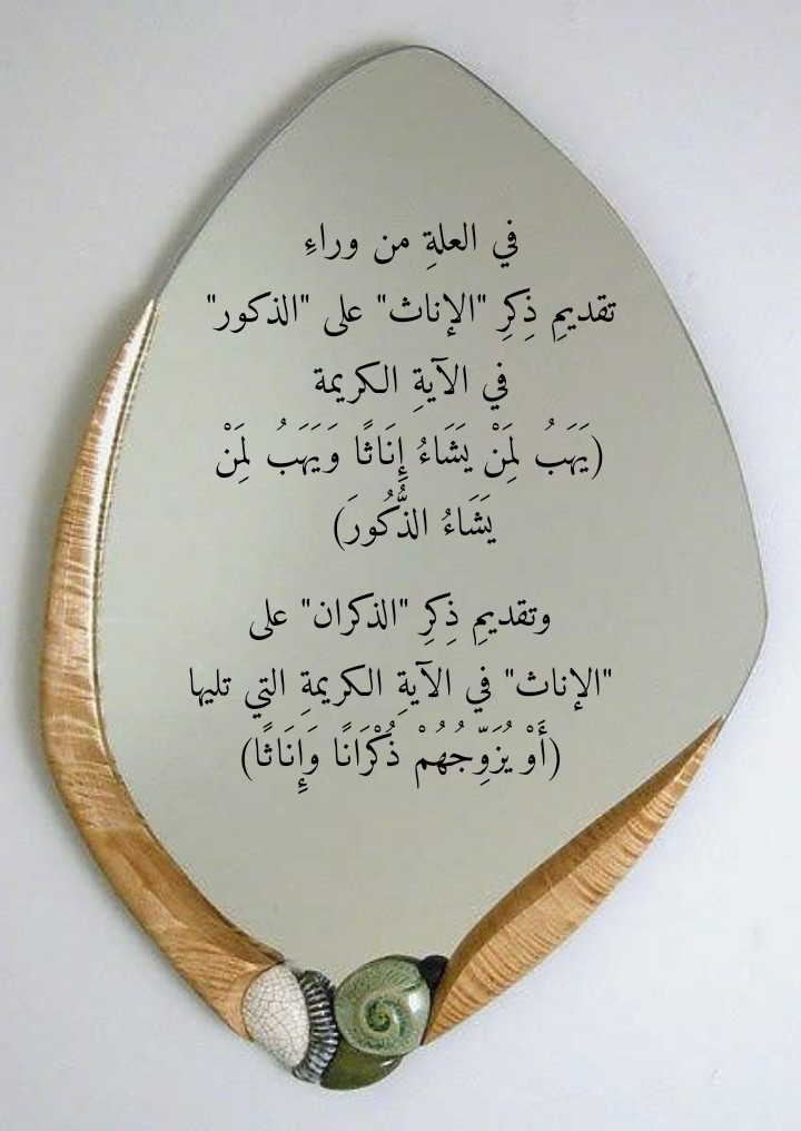 سبتمبر 18, 2023سبتمبر 19, 2023 Sufism24/7 في العلةِ من وراءِ تقديمِ ذِكرِ “الإناث” على “الذكور” في الآيةِ الكريمة (يَهَبُ لِمَنْ يَشَاءُ إِنَاثًا وَيَهَبُ لِمَنْ يَشَاءُ الذُّكُورَ) وتقديمِ ذِكرِ “الذكران” على “الإناث” في الآيةِ الكريمةِ التي تليها (أَوْ يُزَوِّجُهُمْ ذُكْرَانًا وَإِنَاثًا) ذ شارك هذا الموضوع: النقر للمشاركة على X (فتح في نافذة جديدة) X انقر للمشاركة على فيسبوك (فتح في نافذة جديدة) فيس بوك إعجاب تحميل... مرتبط