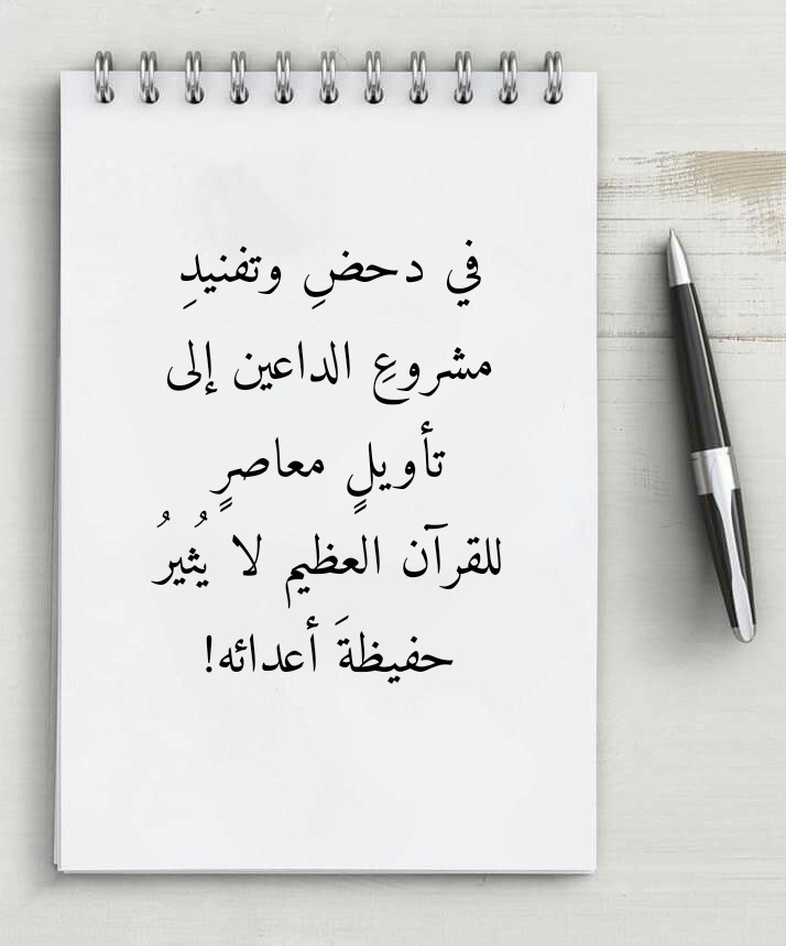 تفتَّقَ ذهنُ شياطينِ الإنسِ في هذا الزمان عن خطةٍ خبيثةٍ يبتغون من ورائِها تمريرَ مشروعِهم الهادفِ إلى تقديمِ تفسيرٍ معاصرٍ للقرآنِ العظيم لا يثيرُ حفيظةَ أولئك الذين تأبى أنفسُهم أن تصدِّقَ بأنَّ هنالك حقيقةً تتعالى وتسمو على تقديسِهم وتمجيدِهم لعقلِ الإنسان! وتقضي هذه الخطةُ بأن يخرجوا على الناسِ برسالةٍ مفادُها أنَّهم “يُقدِّسون النصَّ القرآني ويؤمنون به ولكنَّهم يريدون منا أن نشاطرَهم الرأيَ فنذهبَ مذهبَهم في تأويلِ وتفسيرِ النصِّ القرآني وبما لا يستفزُّ عقولَ أولئك الذين لابد من أن نترفَّقَ في مخاطبتِهم فنقولَ لهم “قَولاً ليِّناً” لعلَّهم يتَّقون أو يُحدثَ لهم ذِكرا. فإذا كان أهلُ الغربِ يجدون غضاضةً في تصديقِ المعجزاتِ التي تتحدَّثُ عنها آياتُ القرآنِ العظيم فلا ضيرَ من أن نعمدَ إلى تغييرِها وبما لا يجعلُها مستفزةً بهذا الذي تضطرُّهم إليهِ من القولِ بما يتعارضُ مع قوانينِ العلم. وإذا كان أهلُ الغربِ يرون في هذه الآيةِ الكريمةِ أو تلك ما لا يتَّفقُ مع ما نُشِّئوا عليه من تمجيدٍ وتقديسٍ للعقل ولـ “إرادةِ الفردِ الحرة”، فلا بأسَ من أن نفسِّرَ هاتين الآيتين الكريمتَين تفسيراً يرضوا به عنا”!