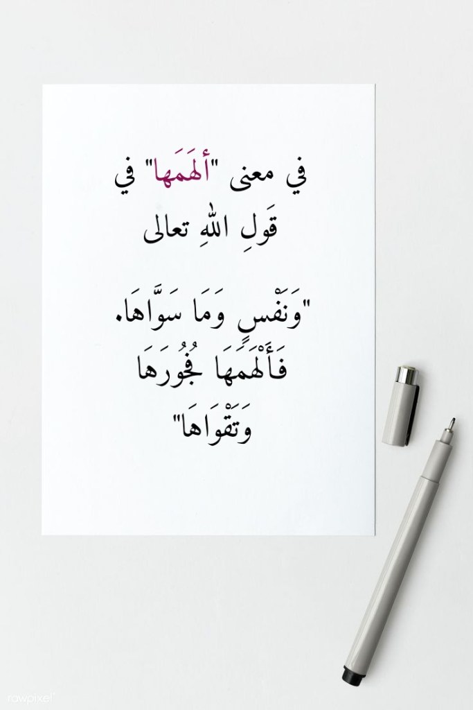 نقرأُ في سورةِ الشمس، وفي الآياتِ الكريمةِ 7- 10 منها، قَولَ اللهِ تعالى: (وَنَفْسٍ وَمَا سَوَّاهَا. فَأَلْهَمَهَا فُجُورَهَا وَتَقْوَاهَا. قَدْ أَفْلَحَ مَنْ زَكَّاهَا. وَقَدْ خَابَ مَنْ دَسَّاهَا). فما هو معنى “أَلْهَمَهَا” في قَولِ اللهِ تعالى هذا؟