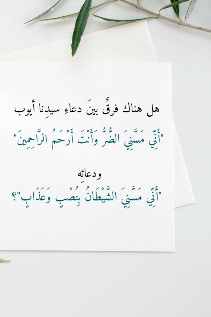 أكتوبر 5, 2023أكتوبر 5, 2023 Sufism24/7 هل هناك فرقٌ بينَ دعاءِ سيدِنا أيوب “أَنِّي مَسَّنِيَ الضُّرُّ وَأَنْتَ أَرْحَمُ الرَّاحِمِينَ” ودعائِه “أَنِّي مَسَّنِيَ الشَّيْطَانُ بِنُصْبٍ وَعَذَابٍ”؟ شارك هذا الموضوع: النقر للمشاركة على X (فتح في نافذة جديدة) X انقر للمشاركة على فيسبوك (فتح في نافذة جديدة) فيس بوك إعجاب تحميل... مرتبط