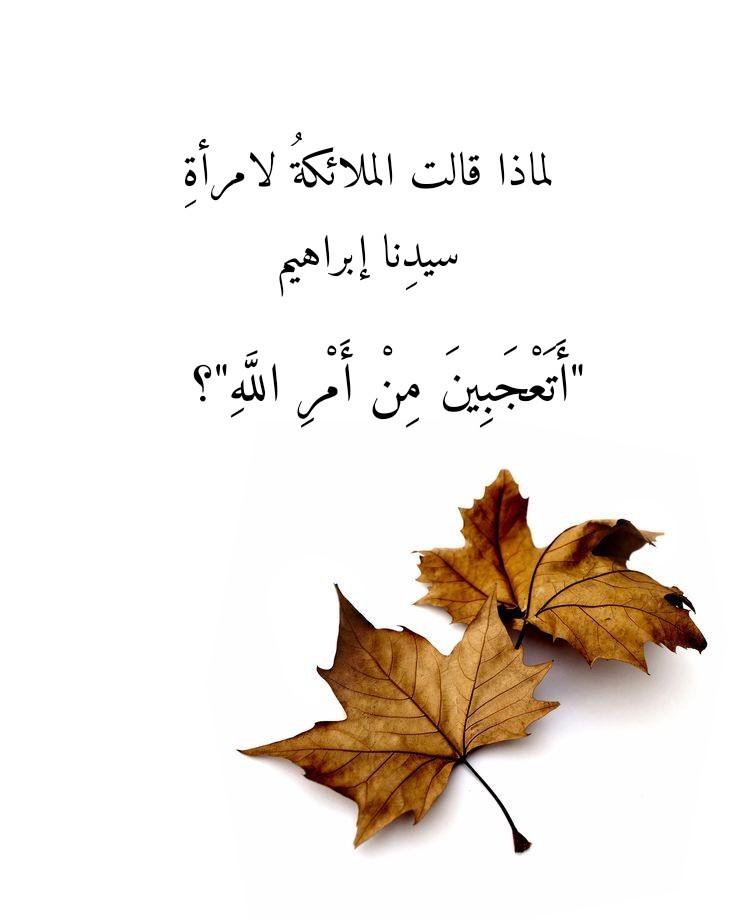 نقرأُ في سورةِ هود، وفي الآياتِ الكريمةِ 71- 73 منها، قولَ اللهِ تعالى: (وَامْرَأَتُهُ قَائِمَةٌ فَضَحِكَتْ فَبَشَّرْنَاهَا بِإِسْحَاقَ وَمِنْ وَرَاءِ إِسْحَاقَ يَعْقُوبَ. قَالَتْ يَا وَيْلَتَى أَأَلِدُ وَأَنَا عَجُوزٌ وَهَذَا بَعْلِي شَيْخًا إِنَّ هَذَا لَشَيْءٌ عَجِيبٌ. قَالُوا أَتَعْجَبِينَ مِنْ أَمْرِ اللَّهِ). فلماذا قالت الملائكةُ لامرأةِ سيدِنا إبراهيم “أَتَعْجَبِينَ مِنْ أَمْرِ اللَّهِ”؟