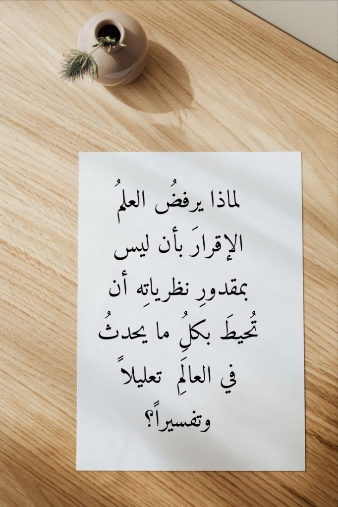 أكتوبر 14, 2023أكتوبر 17, 2023 Sufism24/7 لماذا يرفضُ العلمُ الإقرارَ بأن ليس بمقدورِ نظرياتِه أن تُحيطَ بكلُِ ما يحدثُ في العالَمِ تعليلاً وتفسيراً؟ شارك هذا الموضوع: النقر للمشاركة على X (فتح في نافذة جديدة) X انقر للمشاركة على فيسبوك (فتح في نافذة جديدة) فيس بوك إعجاب تحميل... مرتبط