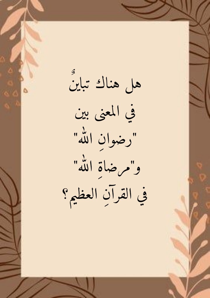يتبيَّنُ لنا، وبتدبُّرِ مواطنِ ورودِ “رِضْوَانِ اللَّهِ” و”مَرْضَاةِ اللَّهِ”، ألا فرقَ هناك في المعنى على الإطلاق بين هاتين العبارتَين القرآنيتَين، وأنَّ الفرقَ هو في مبناهما فحسب.