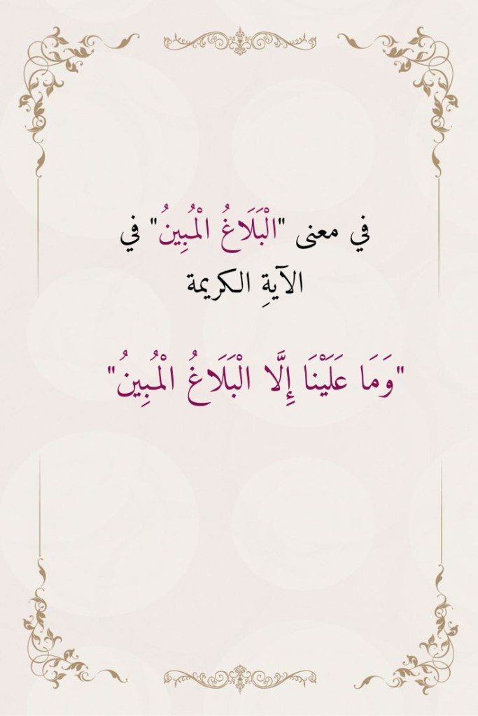 نوفمبر 7, 2023نوفمبر 7, 2023 Sufism24/7 في معنى “الْبَلَاغُ الْمُبِينُ” في الآيةِ الكريمة “وَمَا عَلَيْنَا إِلَّا الْبَلَاغُ الْمُبِينُ” شارك هذا الموضوع: النقر للمشاركة على X (فتح في نافذة جديدة) X انقر للمشاركة على فيسبوك (فتح في نافذة جديدة) فيس بوك إعجاب تحميل... مرتبط