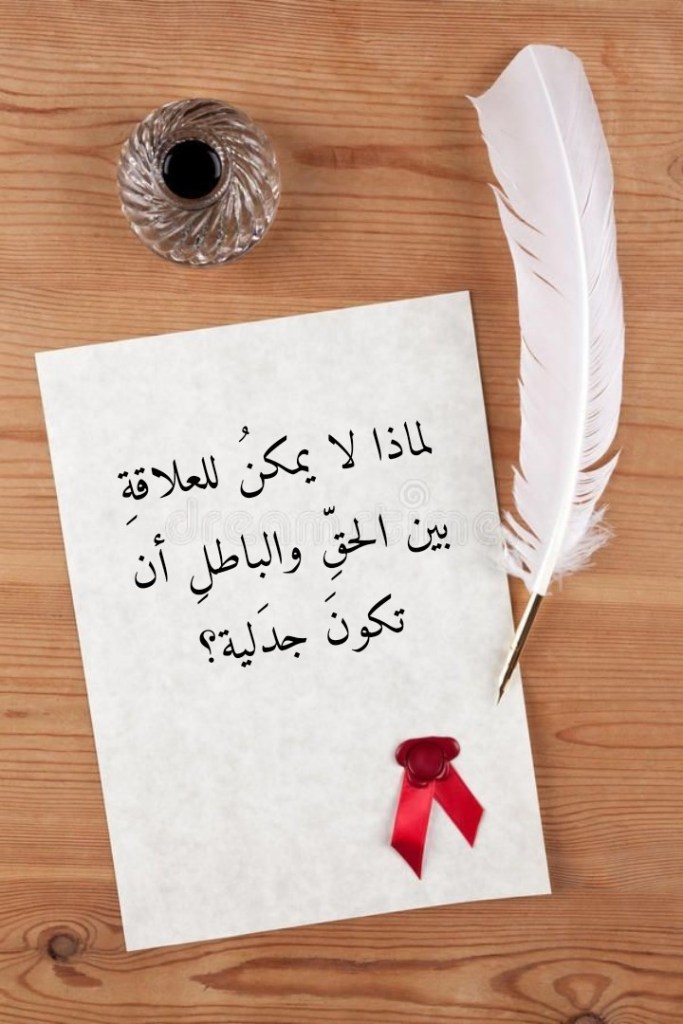 نوفمبر 7, 2023نوفمبر 7, 2023 Sufism24/7 لماذا لا يمكنُ للعلاقةِ بين الحقِّ والباطلِ أن تكونَ جدَلية؟ شارك هذا الموضوع: النقر للمشاركة على X (فتح في نافذة جديدة) X انقر للمشاركة على فيسبوك (فتح في نافذة جديدة) فيس بوك إعجاب تحميل... مرتبط