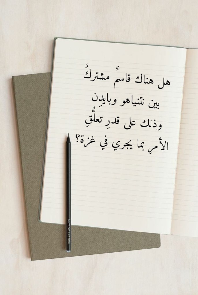 نوفمبر 7, 2023نوفمبر 7, 2023 Sufism24/7 هل هناك قاسمٌ مشتركٌ بين نتنياهو وبايدِن وذلك على قدرِ تعلُّقِ الأمرِ بما يجري في غزة؟ شارك هذا الموضوع: النقر للمشاركة على X (فتح في نافذة جديدة) X انقر للمشاركة على فيسبوك (فتح في نافذة جديدة) فيس بوك إعجاب تحميل... مرتبط