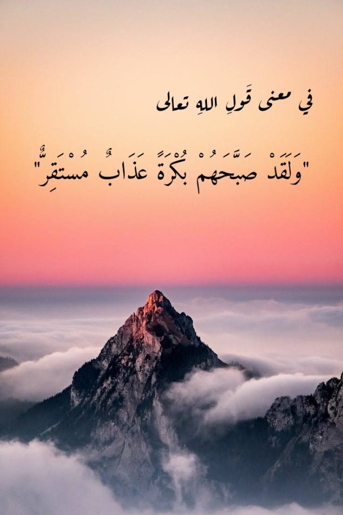 نقرأُ في سورةِ القمر، وفي الآيةِ الكريمة 38 منها، قَولَ اللهِ تعالى: (وَلَقَدْ صَبَّحَهُمْ بُكْرَةً عَذَابٌ مُسْتَقِرٌّ).