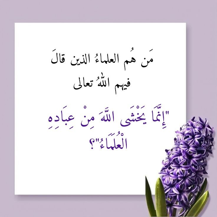 فـ “العلماءُ” الذين امتدحهم اللهُ تعالى بقولِه “إِنَّمَا يَخْشَى اللَّهَ مِنْ عِبَادِهِ الْعُلَمَاءُ” هُم الذين وصفت حالَهم مع اللهِ تعالى الآياتُ الكريمة: (إِنَّ فِي خَلْقِ السَّمَاوَاتِ وَالْأَرْضِ وَاخْتِلَافِ اللَّيْلِ وَالنَّهَارِ لَآيَاتٍ لِأُولِي الْأَلْبَابِ. الَّذِينَ يَذْكُرُونَ اللَّهَ قِيَامًا وَقُعُودًا وَعَلَى جُنُوبِهِمْ وَيَتَفَكَّرُونَ فِي خَلْقِ السَّمَاوَاتِ وَالْأَرْضِ رَبَّنَا مَا خَلَقْتَ هَذَا بَاطِلًا سُبْحَانَكَ فَقِنَا عَذَابَ النَّارِ. رَبَّنَا إِنَّكَ مَنْ تُدْخِلِ النَّارَ فَقَدْ أَخْزَيْتَهُ وَمَا لِلظَّالِمِينَ مِنْ أَنْصَارٍ. رَبَّنَا إِنَّنَا سَمِعْنَا مُنَادِيًا يُنَادِي لِلْإِيمَانِ أَنْ آمِنُوا بِرَبِّكُمْ فَآمَنَّا رَبَّنَا فَاغْفِرْ لَنَا ذُنُوبَنَا وَكَفِّرْ عَنَّا سَيِّئَاتِنَا وَتَوَفَّنَا مَعَ الْأَبْرَارِ. رَبَّنَا وَآتِنَا مَا وَعَدْتَنَا عَلَى رُسُلِكَ وَلَا تُخْزِنَا يَوْمَ الْقِيَامَةِ إِنَّكَ لَا تُخْلِفُ الْمِيعَادَ) (190- 194 آل عِمران).