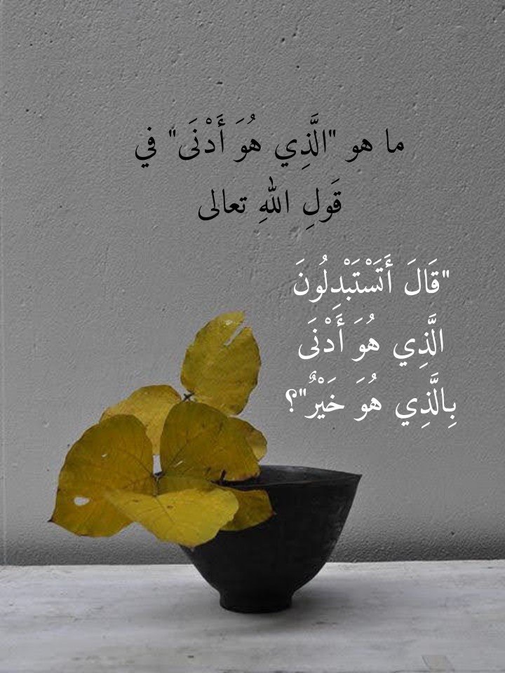 نوفمبر 22, 2023نوفمبر 23, 2023 Sufism24/7 ما هو “الَّذِي هُوَ أَدْنَى” في قَولِ اللهِ تعالى “قَالَ أَتَسْتَبْدِلُونَ الَّذِي هُوَ أَدْنَى بِالَّذِي هُوَ خَيْرٌ”؟ شارك هذا الموضوع: النقر للمشاركة على X (فتح في نافذة جديدة) X انقر للمشاركة على فيسبوك (فتح في نافذة جديدة) فيس بوك إعجاب تحميل... مرتبط