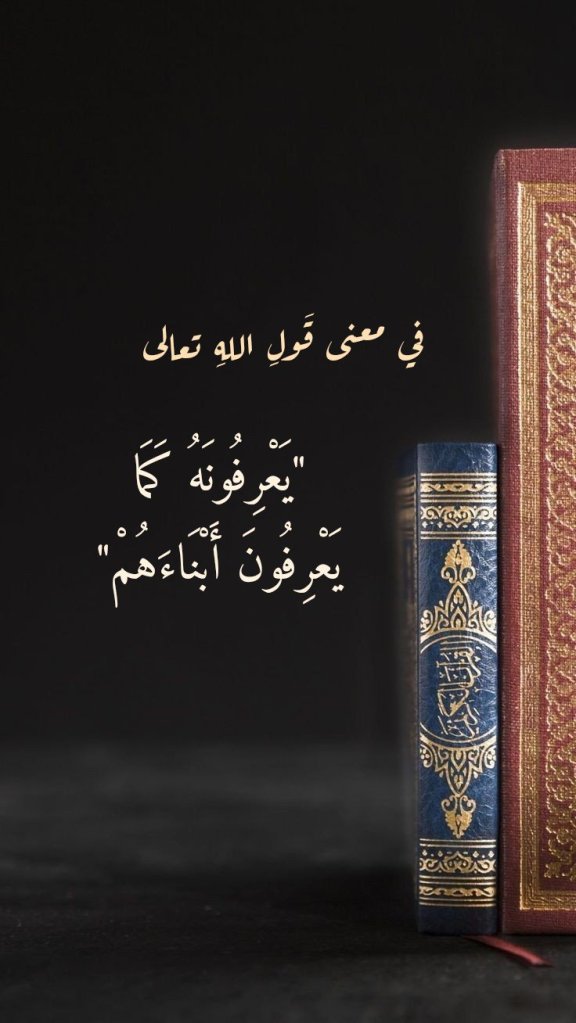 نقرأُ في الآيةِ الكريمة 146 من سورةِ البقرة: (الَّذِينَ آتَيْنَاهُمُ الْكِتَابَ يَعْرِفُونَهُ كَمَا يَعْرِفُونَ أَبْنَاءَهُمْ وَإِنَّ فَرِيقًا مِنْهُمْ لَيَكْتُمُونَ الْحَقَّ وَهُمْ يَعْلَمُونَ). كما ونقرأُ في الآيةِ الكريمة 20 من سورةِ الأنعام: (الَّذِينَ آتَيْنَاهُمُ الْكِتَابَ يَعْرِفُونَهُ كَمَا يَعْرِفُونَ أَبْنَاءَهُمُ الَّذِينَ خَسِرُوا أَنْفُسَهُمْ فَهُمْ لَا يُؤْمِنُونَ). فما هو معنى قَولِ اللهِ تعالى “يَعْرِفُونَهُ كَمَا يَعْرِفُونَ أَبْنَاءَهُمْ” في هاتين الآيتَين الكريمتَين؟