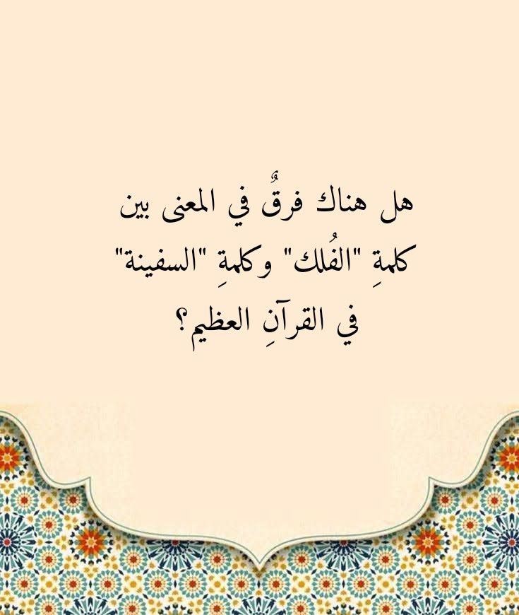 ديسمبر 19, 2023ديسمبر 19, 2023 Sufism24/7 هل هناك فرقٌ في المعنى بين كلمةِ “الفُلك” وكلمةِ “السفينة” في القرآنِ العظيم؟ شارك هذا الموضوع: المشاركة على X (فتح في نافذة جديدة) X شارك على فيس بوك (فتح في نافذة جديدة) فيس بوك إعجاب تحميل... مرتبط